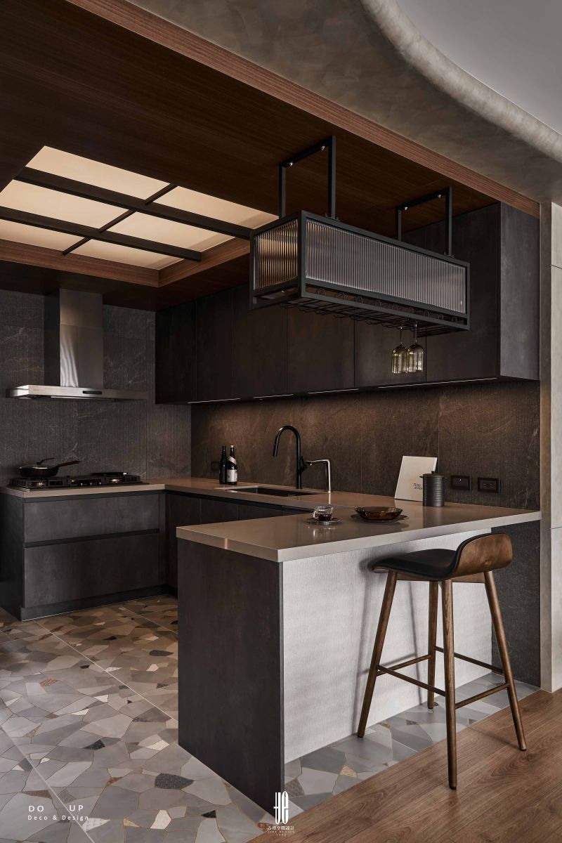 全室深色基調賦予了生活沉穩的律動,搭配煙燻木質,彼此交錯鋪陳,共同編織出冷冽卻不拘謹的質感。