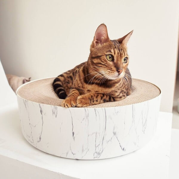 此款冥想貓床還有一項貼心設計,特殊紙板與底座設計可以讓貓孩抓完的屑屑,集中落於下方,可輕易維持家中的整潔。另外,瓦愣紙版為雙面設計,單面的使用期限為3個月,因此單一瓦愣紙床的最常使用期限可長達半年喔,不僅十分耐用也達到了環保的目的呢!