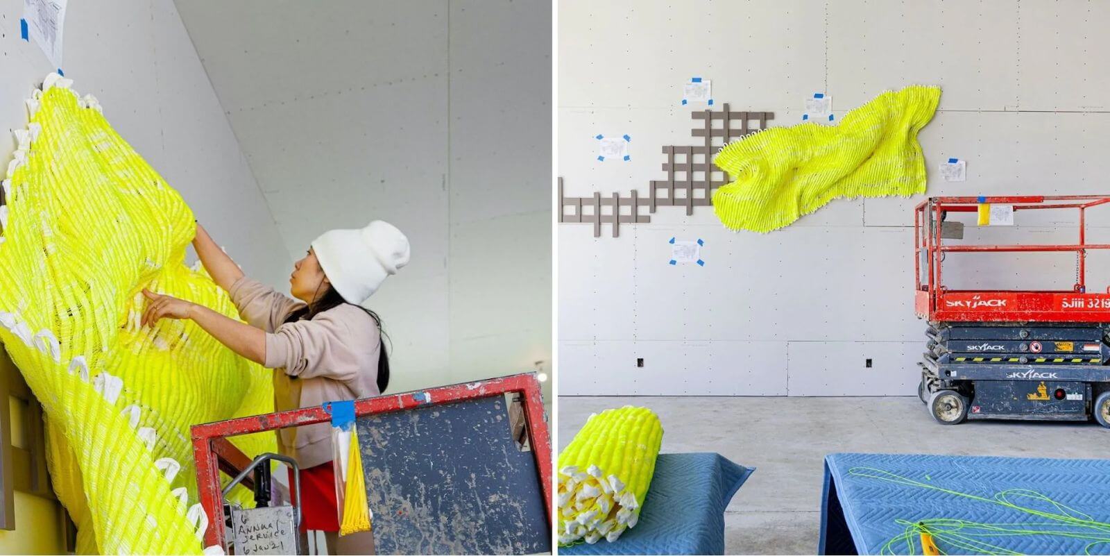 藝術品作為室內擺設的一環,能為空間陳列起到畫龍點睛的效果,與家配美學息息相關。不同媒材的藝術品,在空間中扮演的角色都不盡相同,粗略劃分會區分為平面與雕塑,而雕塑又可細分出硬 質雕塑與軟雕塑,平面類型的藝術品亦不局限於繪畫媒材。空間規劃師無論是在思考居家佈置或者商業陳列時,總會根據空間類型與想要營造的氛圍來選擇藝術品擺飾,其中若在選擇時,能對藝術 品的內涵有深入的了解,也能讓藝術擺設跳脫單純的裝飾性,反之於空間中寄託了故事性。今天DO UP想為大家介紹一位來自蒙大拿州的韓裔藝術家— MIMI JUNG,看她如何運用絲絲細線講述人生 故事與生活中對於不同議題的探索。