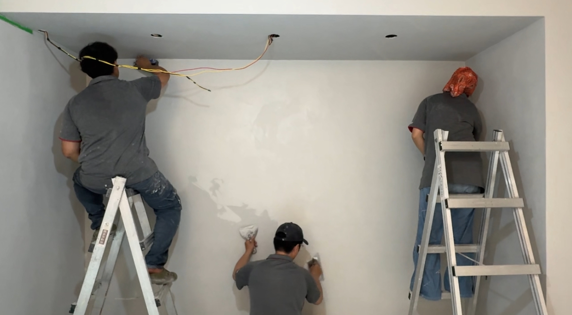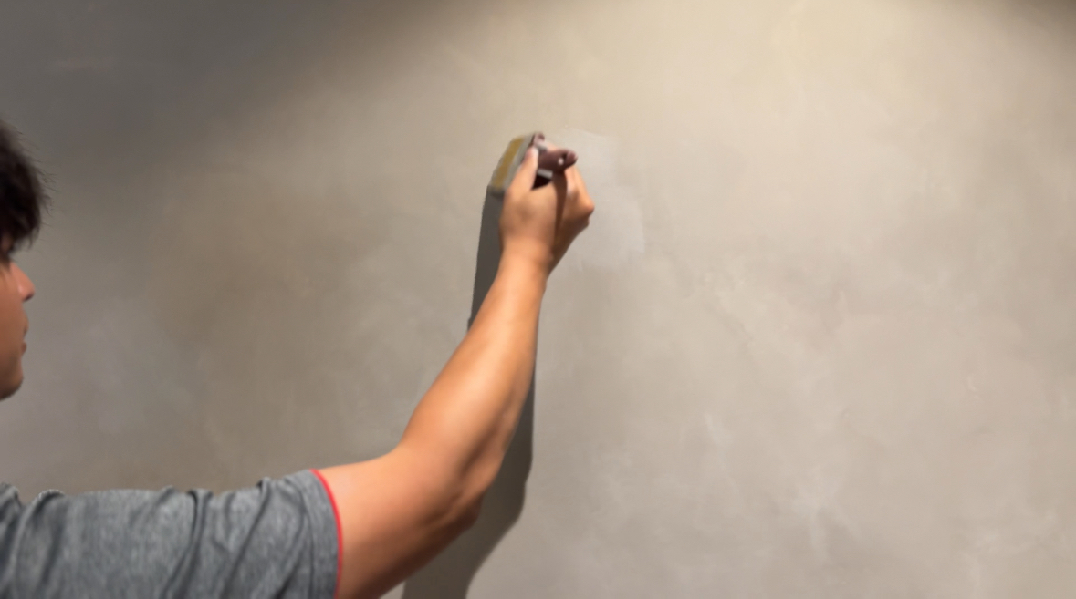 麂皮漆表面的柔和絨面質感,不同於一般外顯的奢華,而是一種低調且內斂的高級感,讓人身心得以徹底放鬆。這種塗料的魅力,尤其來自於師傅手工來回刷漆的過程,這種獨一無二的手作紋理,自然地在牆面上疊加出一層細緻的視覺層次,使得牆面不再冰冷單調,反而像是一塊溫暖的布料,為使用者帶來極佳的親膚與心靈慰藉。