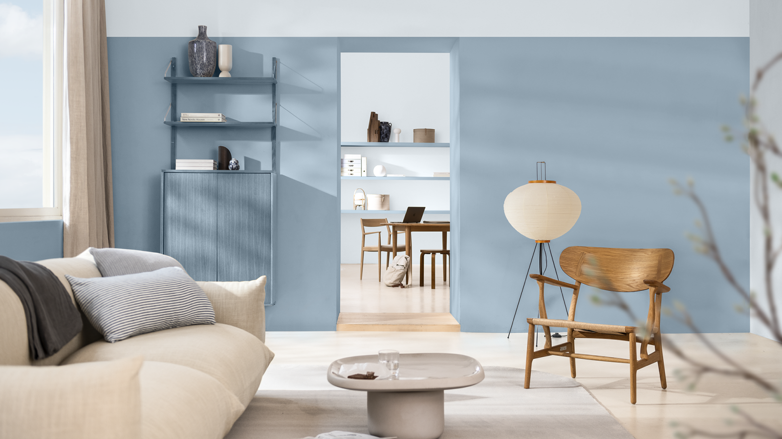 這種介於藍與灰之間的柔和調性,是平衡與自在的最佳體現。它讓光線更通透,讓空間更具開放感,是最適合全室塗刷的「療癒藍」。