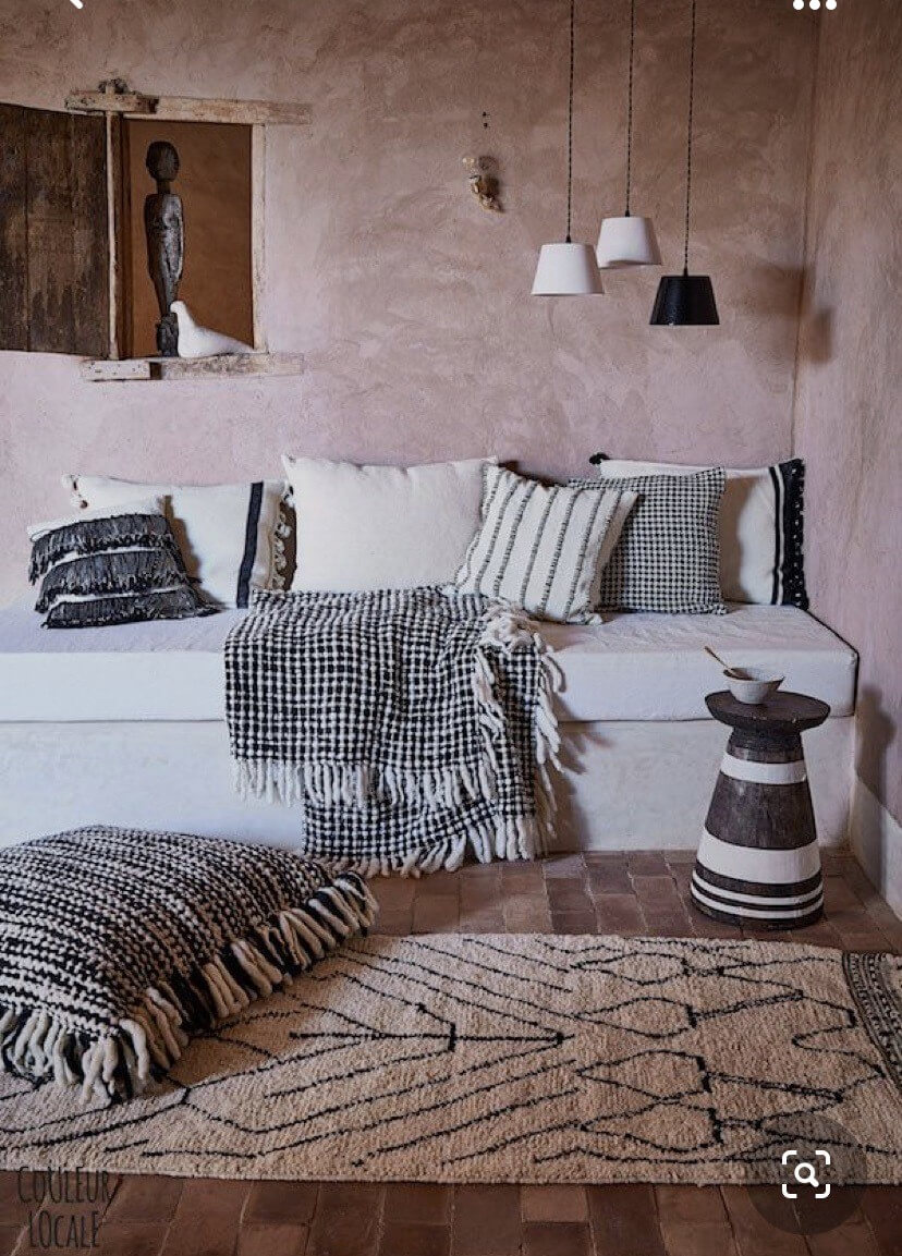 接下來就是藉由豐富多樣的布料藝品,來堆疊出舒適慵懶的氣息!此風格的居家裝飾,最不可或缺的元素,就是民族風情印花的布藝品,例如以地毯鋪張於地面上,或者大小不一的抱枕,堆放於沙發上頭,在配色上喜愛以2-3種對比度較高的色系來組合,營造熱鬧活潑的氣息,其中藍、橘、紅或者大地色系,都是經典不敗的選擇喔!
