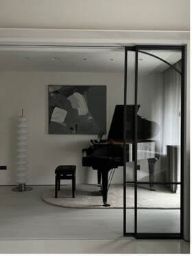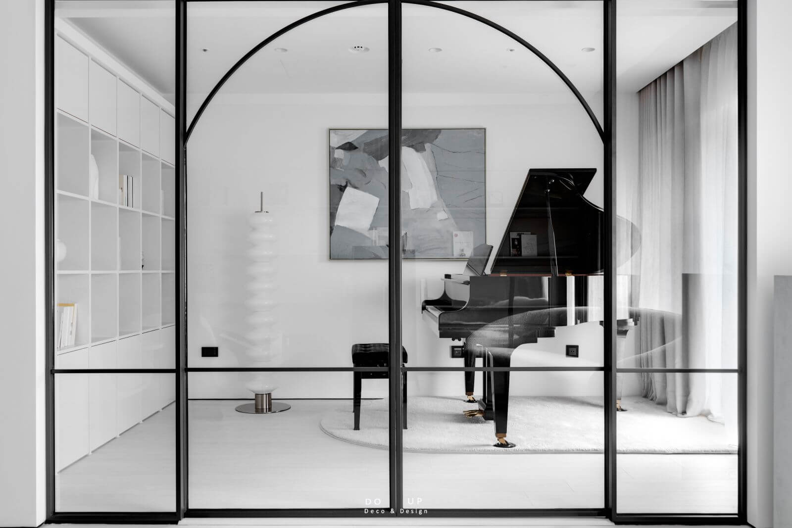 由於空間是屋主的琴房,因此在空間規劃上我們建議屋主使用透明玻璃,若是有拍攝或是演奏,可以在空間中,視覺對稱形成好看的演奏畫面。