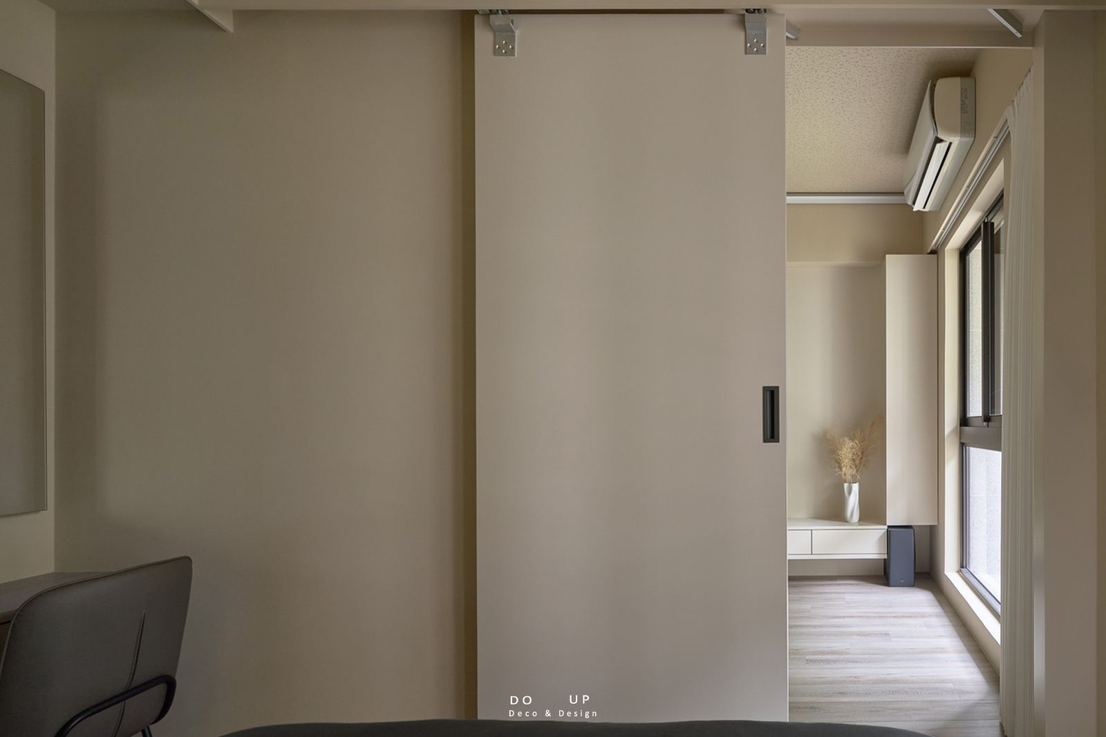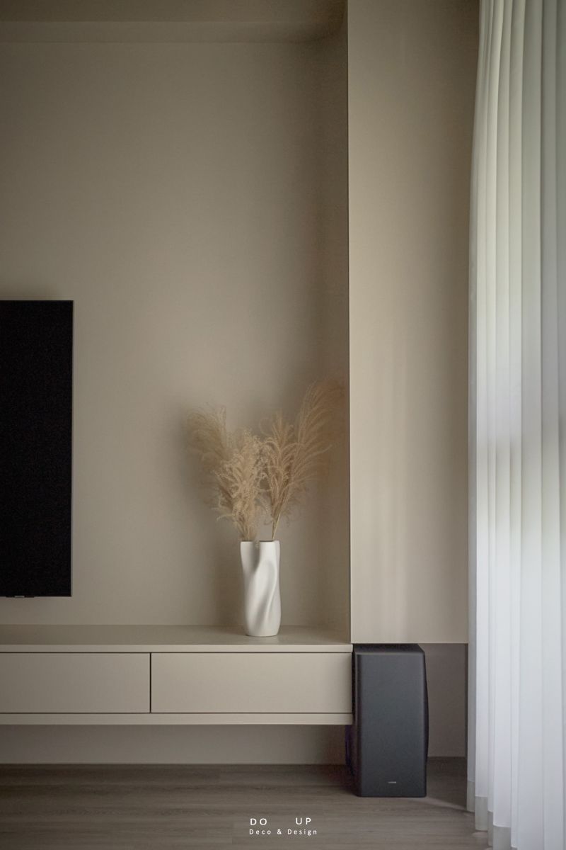 另外,DO UP考慮到客戶對光線的敏感性,我們在規劃主臥室軟裝時,特別選用了高遮光性的遮光窗簾,以確保不受外界光線的干擾,創造一個理想的休息環境。