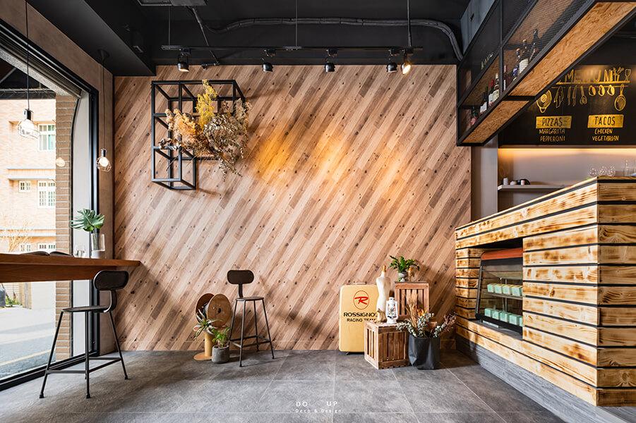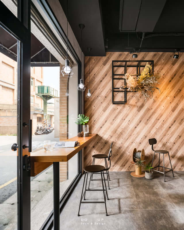 分店整體以工業風為主,室內設計師設計了簡易的用餐區、吧台區以及網美打卡牆,希望在這個空間中,讓客人買完三明治後,也能在現場拍攝打卡。