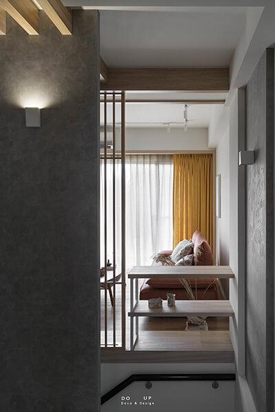 原木色系的櫃體、灰色塗料以及適當的留白,在一層一層的堆疊中,建構出屬於家的美好樣貌。