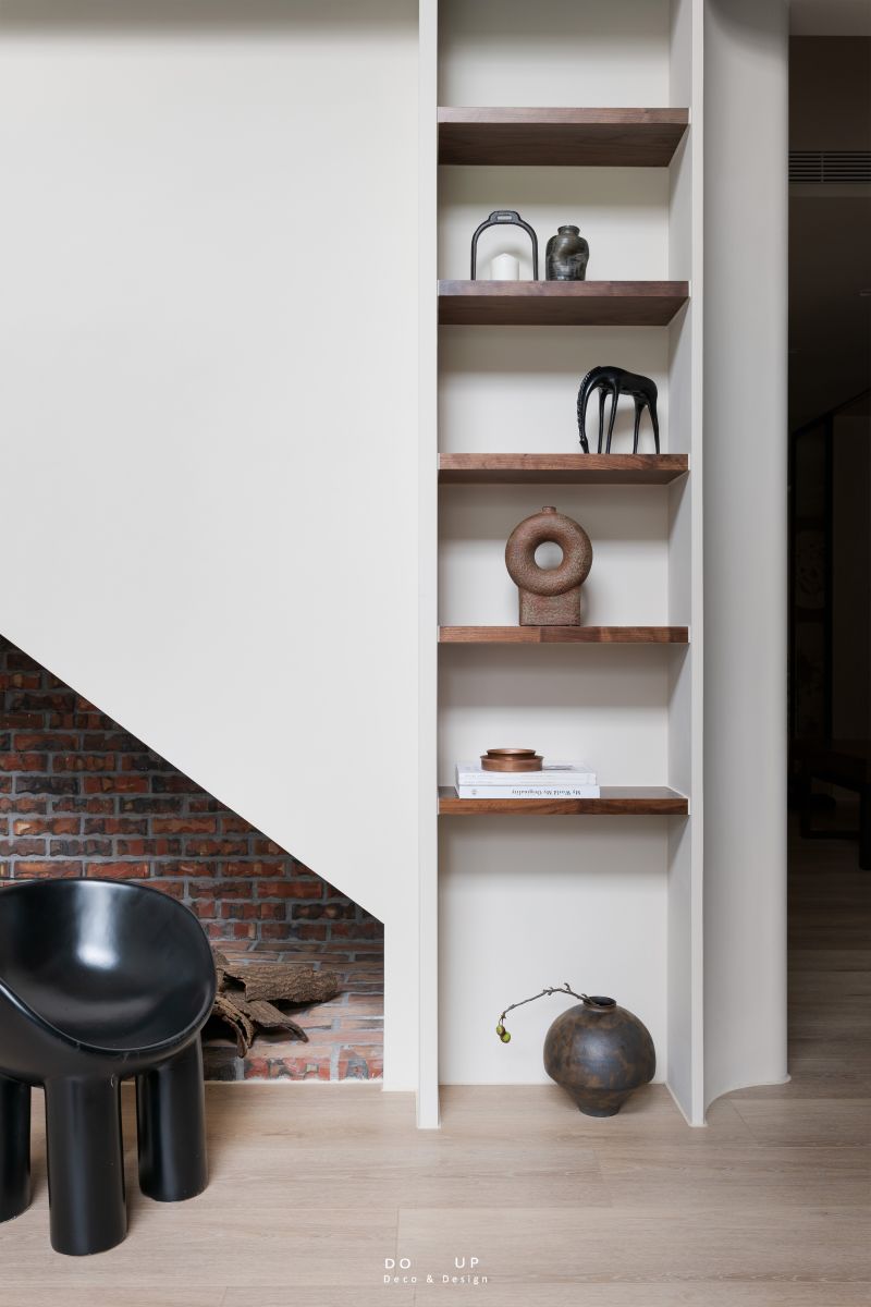 空間中用大量的木質與留白,賦予家更多的想像。用溫潤且舒心的空間氛圍,拉近了家人間的距離。車庫後門一進來,是閱讀空間也是一個進入家中的過度之地,讓自己多一個沉澱的空間,整理好心靈,並帶著愉悅的心情進入家中。光線倚著窗戶緩緩流入,擷取生活的片段,並細細品味。