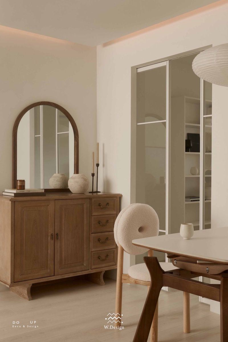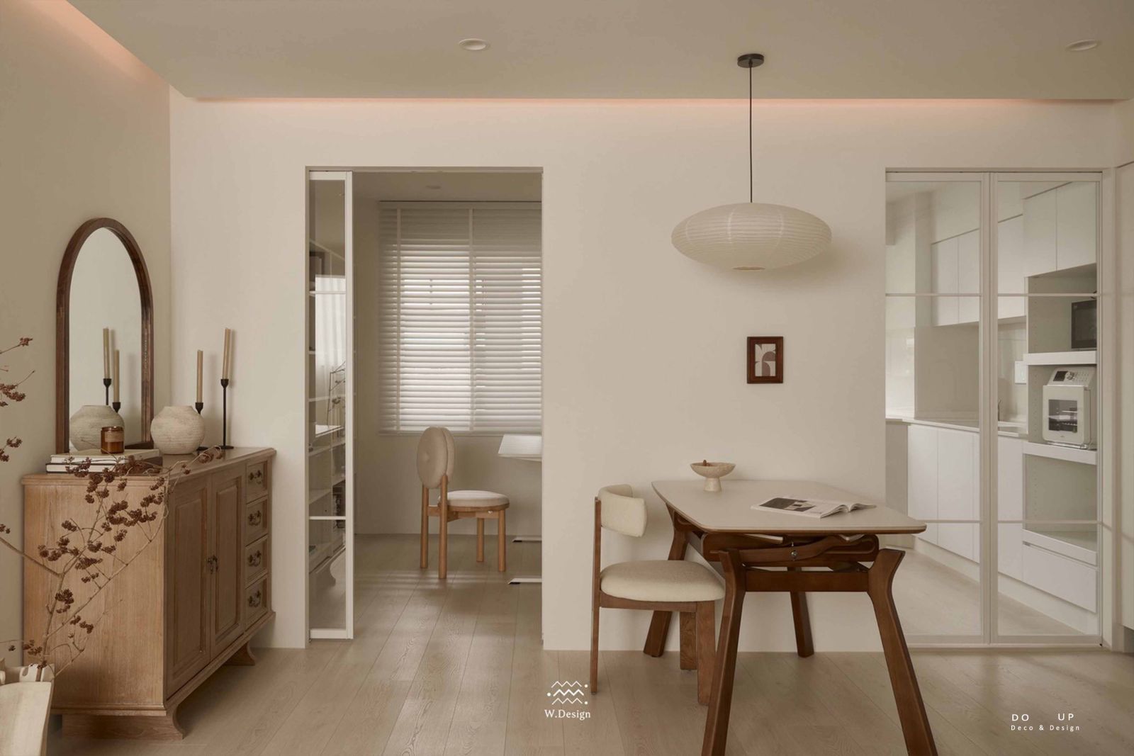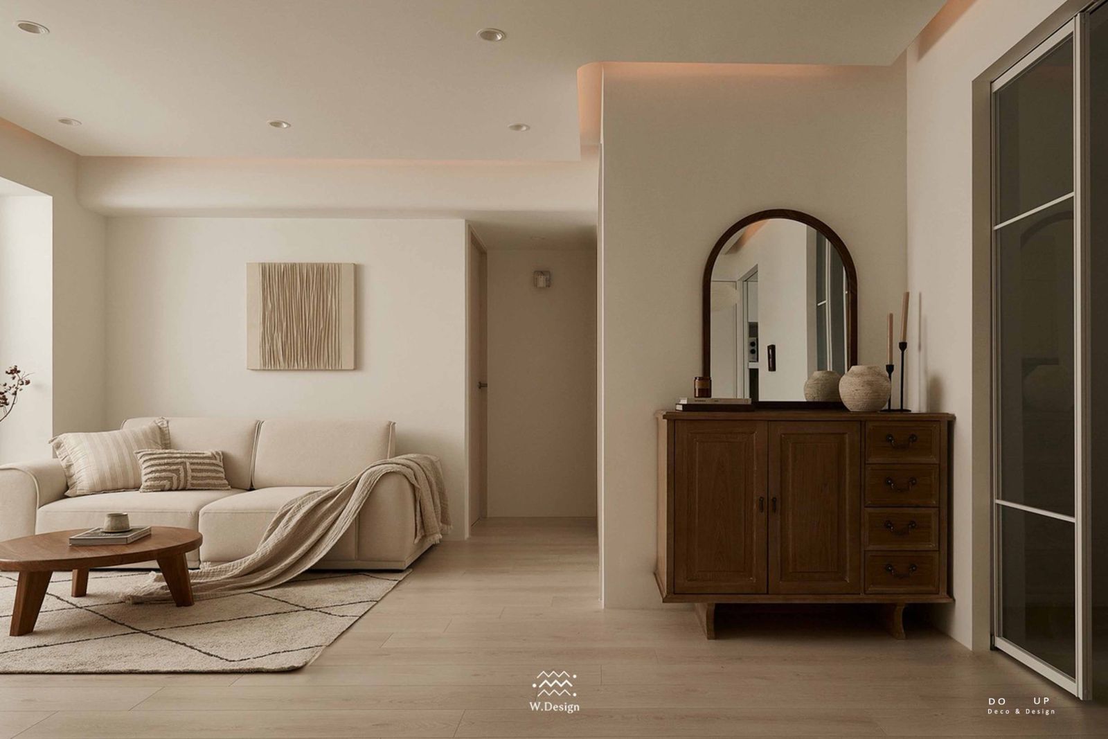 千篇一律的奶油色空間設計中,室內設計師與屋主用品味打造溫暖又質感的空間,在簡約細緻的基底中,挑選法式復古氛圍的軟裝家具妝點,完美的對比顏色比例,讓空間個性凸顯、展現品味,用布料紋路、肌理擺飾品與畫作點綴,溫馨更上一層,讓每一處都百看不膩、處處端景。