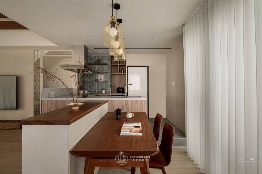 餐桌上垂下的吊燈,以其輕柔的幾何線條,在純淨的畫紙上落下了最動人的陰影。軟裝師透過幾抹自然花藝的佈置,讓室內與外界的自然氣息無縫連結。在這裡,你可以感受到實木賦予空間的節奏,每一處細節都是 DO UP 為你與家人~還有貓咪!打造的靜謐時光,讓回家用餐,真正成為一場逃離日常的浪漫島敘。