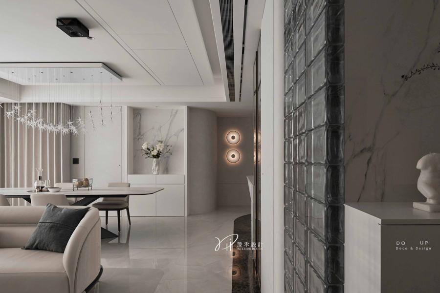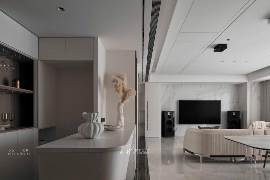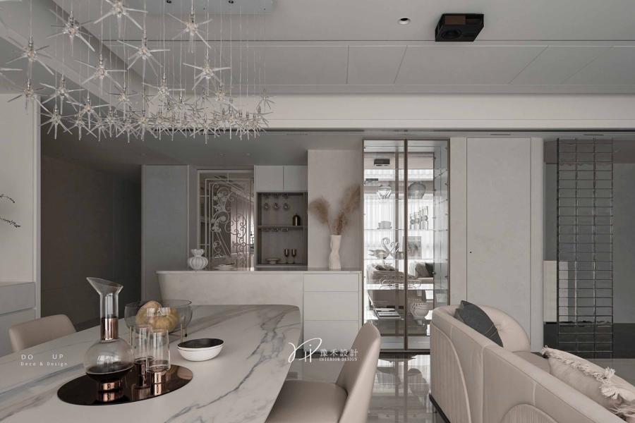 室內設計師在色彩計畫上有完善的規劃,以白色、米色系為主以及材質變化,從大理石、玻璃到家具的皮革、鐵件等,一層層的堆疊下完整了整個空間的細膩,DO UP擺拍設計師再透過飾品的挑選與陳列,襯托出更精緻又柔和的氛圍質感。