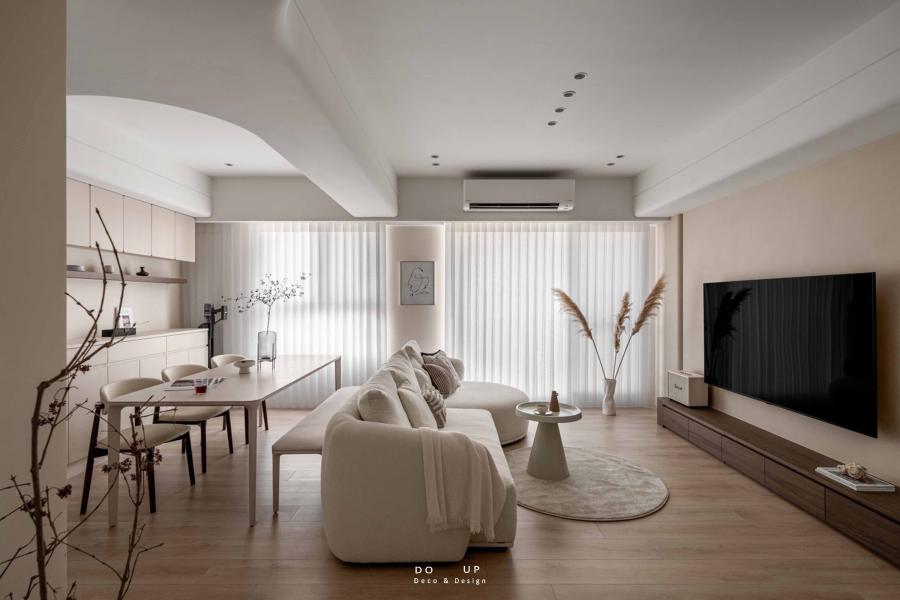 「玄關與客廳勾勒的奶油序曲,日常即是溫柔的總和」